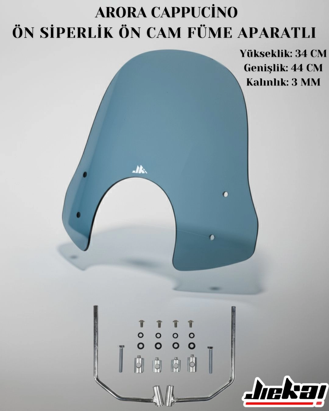 JİEKAİ Arora Cappuccino Siyah Ön Siperlik, motosiklet ve scooter kullanıcıları için özel olarak tasarlanmış, hem işlevsel hem de şık bir ön siperliktir. Siyah ve cappuccino renklerinin zarif birleşimiyle estetik bir görünüm sunarken, şeffaf yapısı sayesinde sürücünün görüşünü engellemeden etkili bir koruma sağlar. Alttan aparatlı montaj sistemi, siperliğin sağlam bir şekilde yerinde durmasını sağlar, böylece güvenli bir sürüş deneyimi sunar.