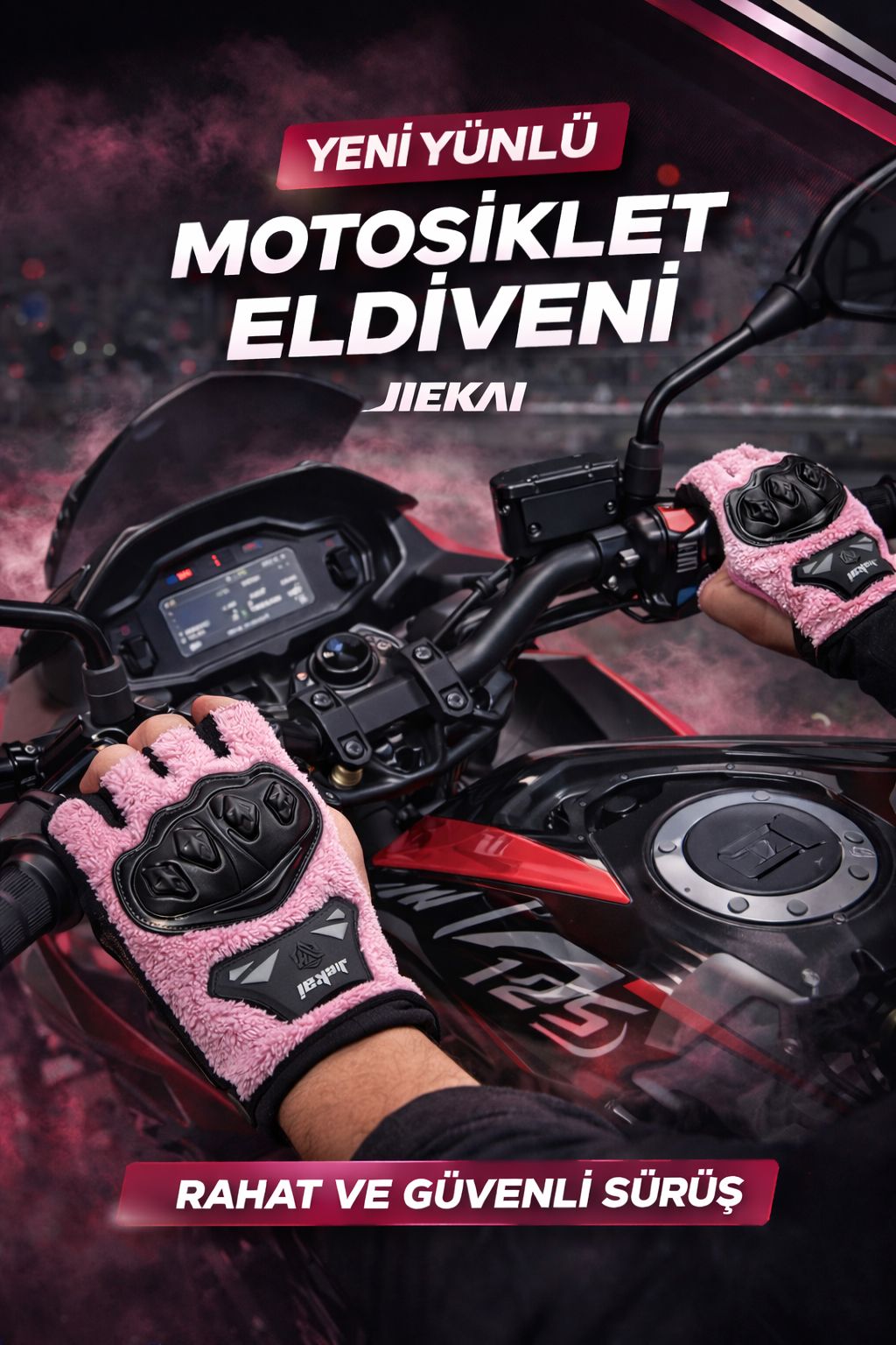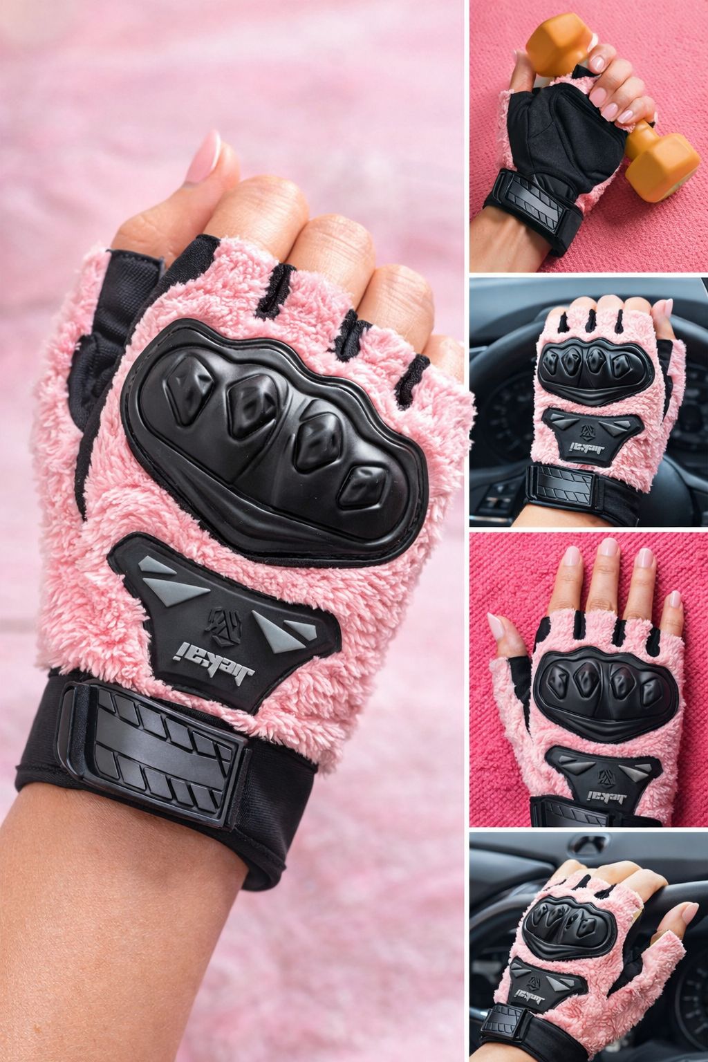 JK Peluşlu Yarım Eldiven, konforu, sıcak tutan yapısı ve estetik tasarımı bir araya getiren özel bir üründür. Yumuşak dokulu peluş kumaşı ve dikkat çekici pembe rengi ile hem şık bir görünüm sunar hem de soğuk havalarda sürüş keyfini artırır. Günlük kullanım ve motosiklet sürüşleri için ideal olarak tasarlanmıştır.