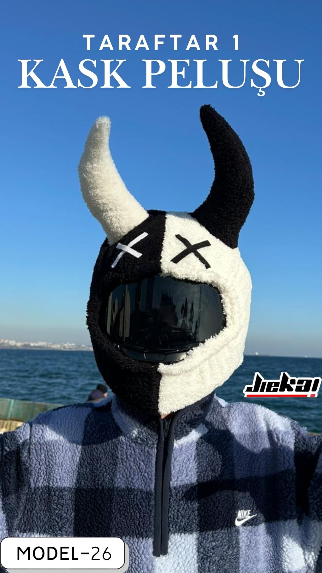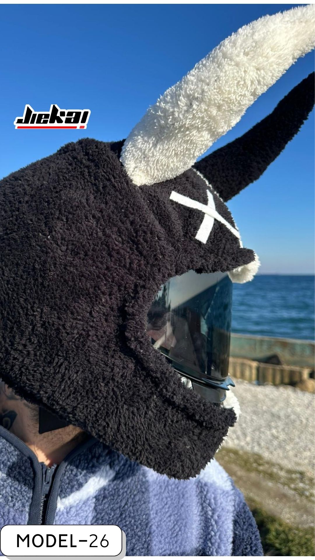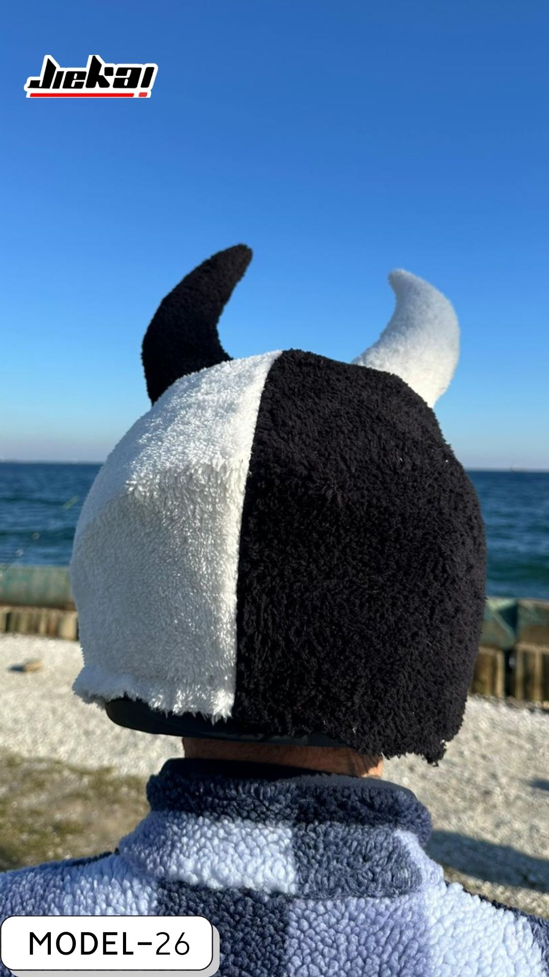 JİEKAİ YENİ ÜRÜN | SİYAH BEYAZ AŞKI KASK PELUŞU