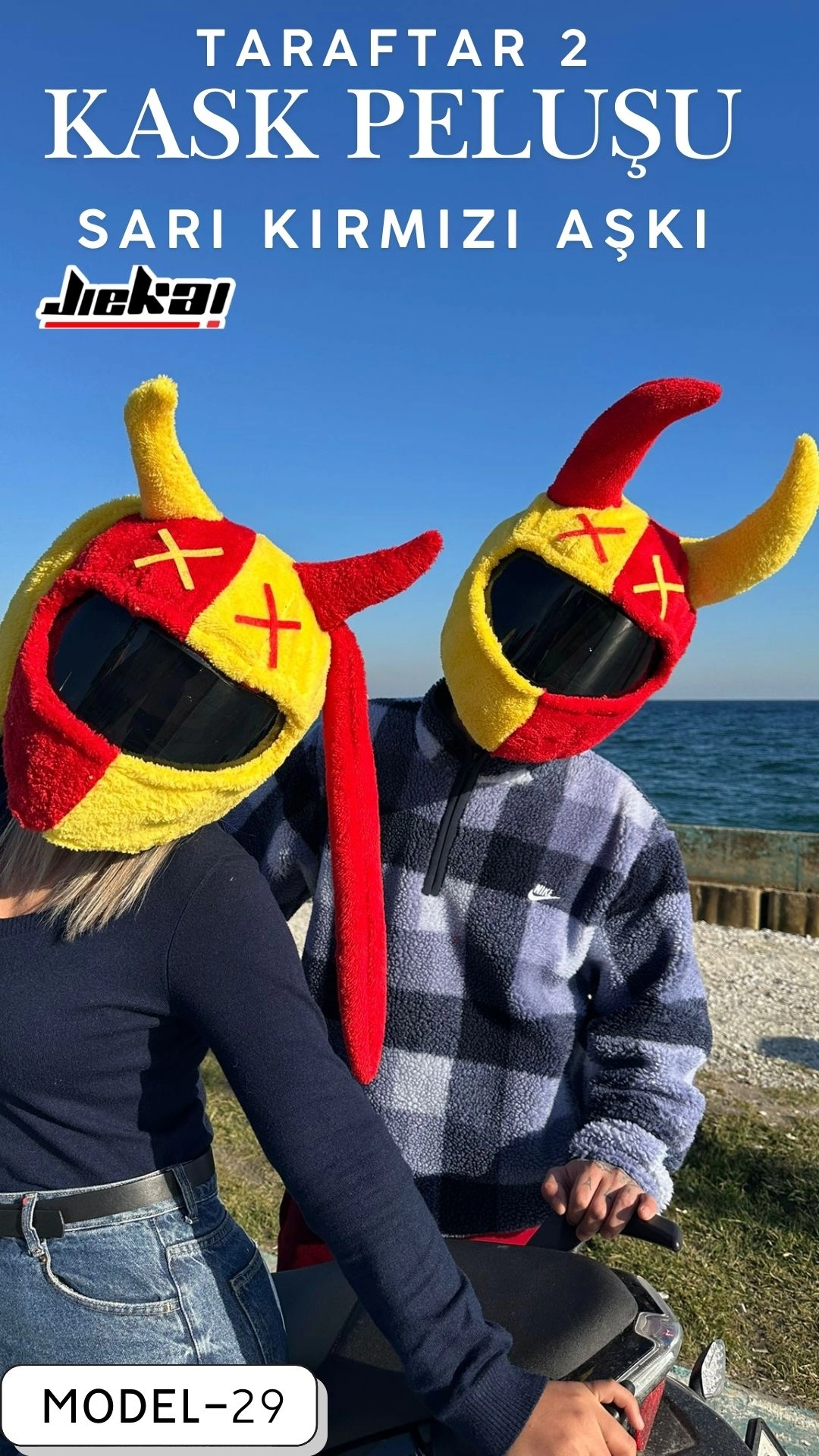 Taraftar-2 Sarı Kırmızı Kask Peluşu, JİEKAİ kalitesiyle üretilmiş, motosiklet aksesuarlarında fark yaratmak isteyen kullanıcılar için ideal bir üründür.