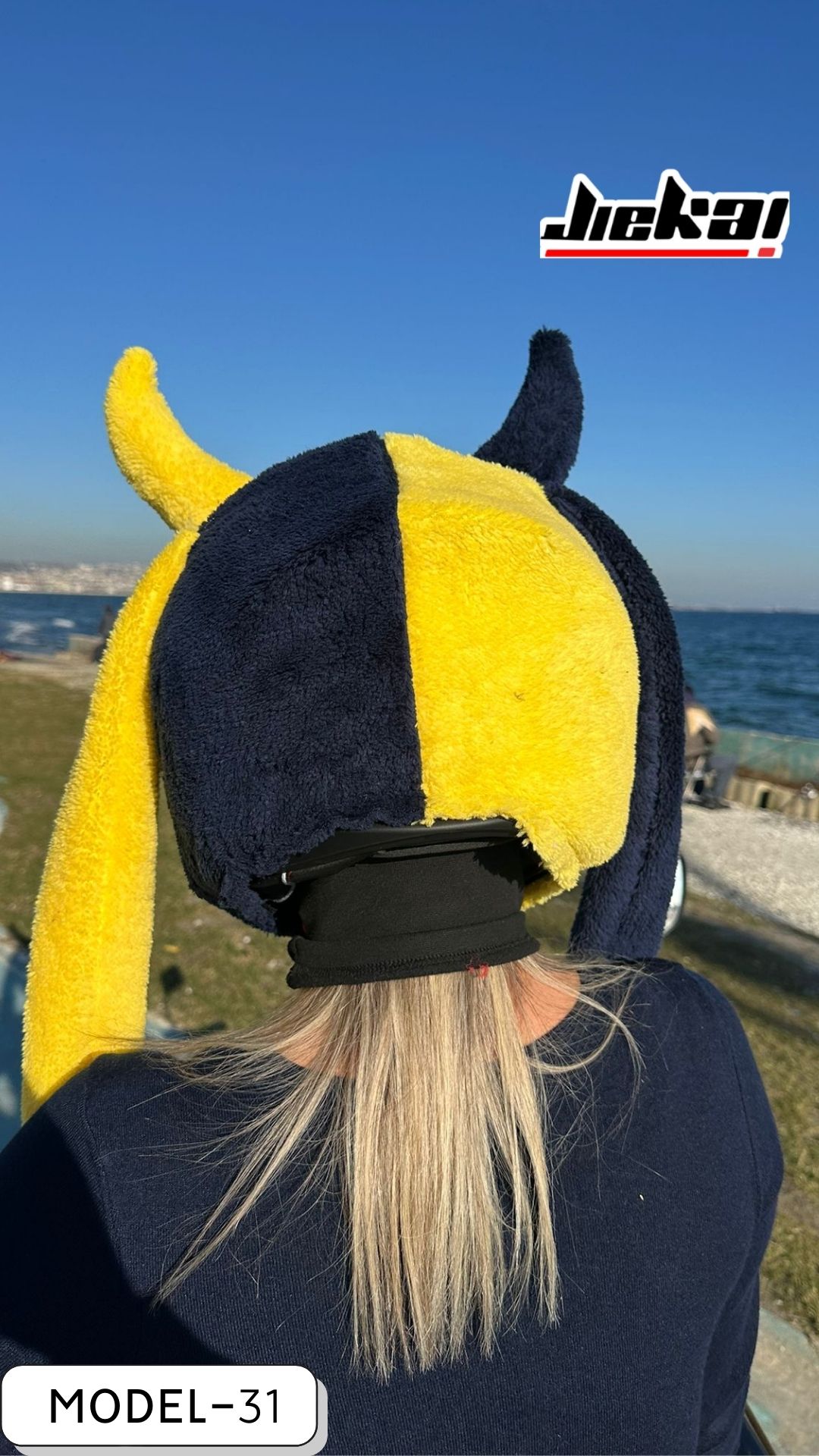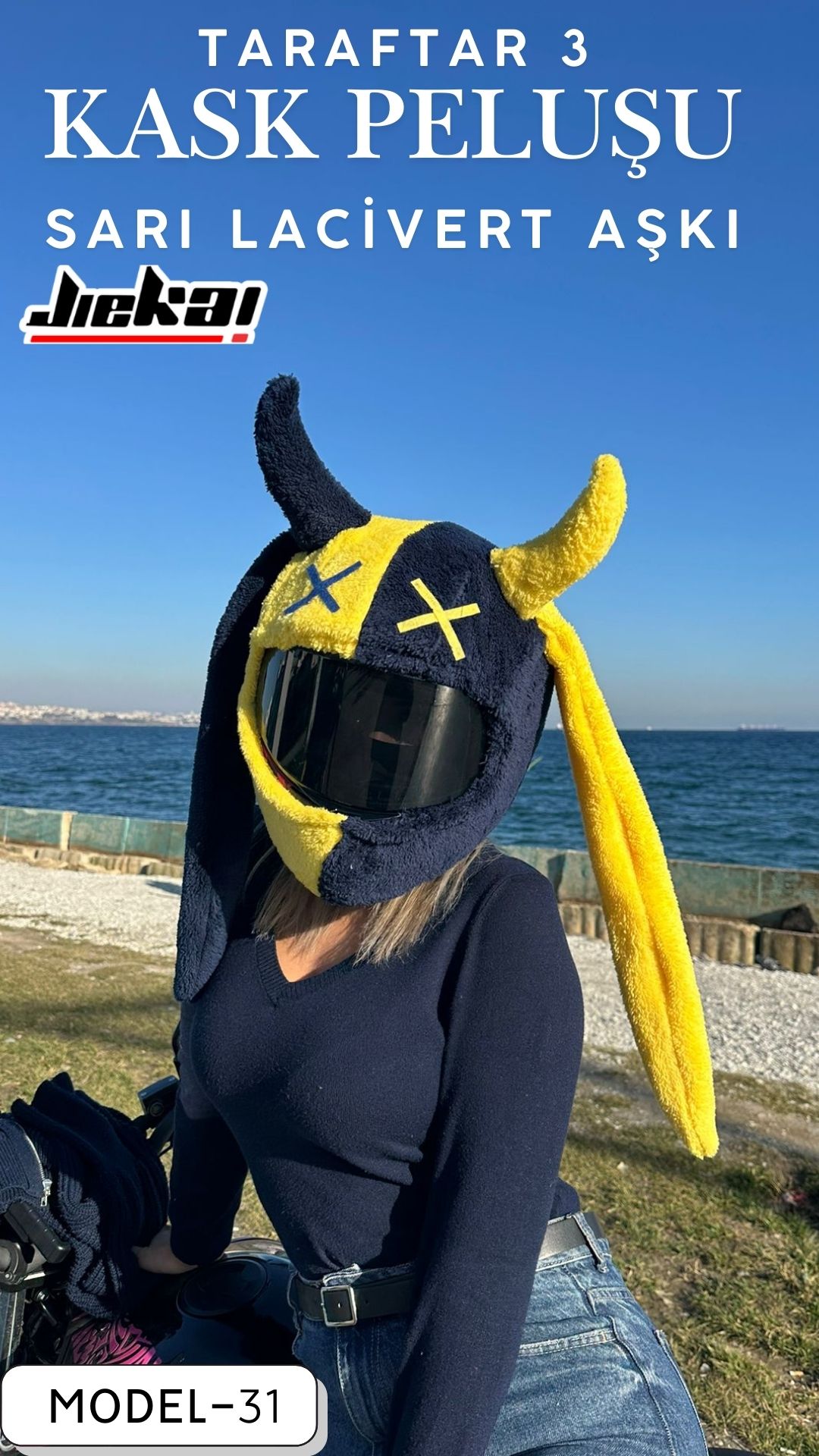 Taraftar-3 Sarı Lacivert Kask Peluşu, JİEKAİ kalitesiyle üretilmiş olup taraftar ruhunu sürüşlerine yansıtmak isteyenler için vazgeçilmez bir üründür.